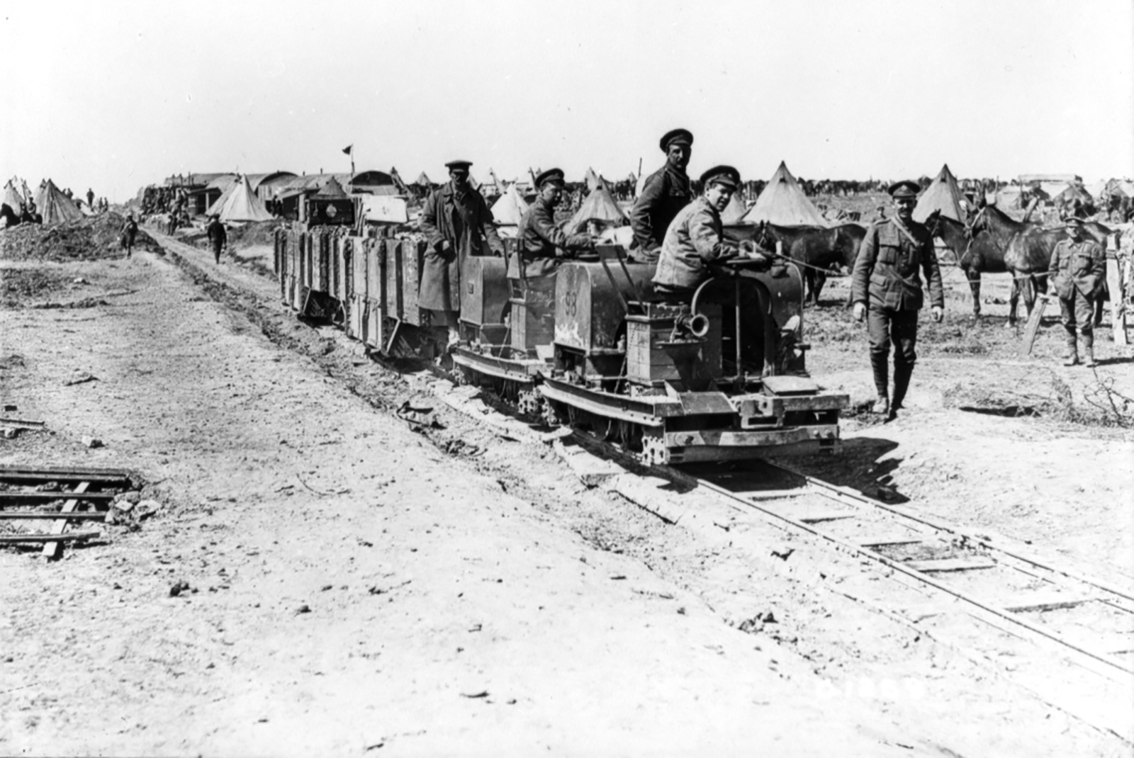 [14] War Diary, Chief Engineer, January, 1917, Appendix 2. The trench tramways were crude rail systems built for small carts pulled by men or horses unlike the 60cm gauge heavy steel track used for the light railways.